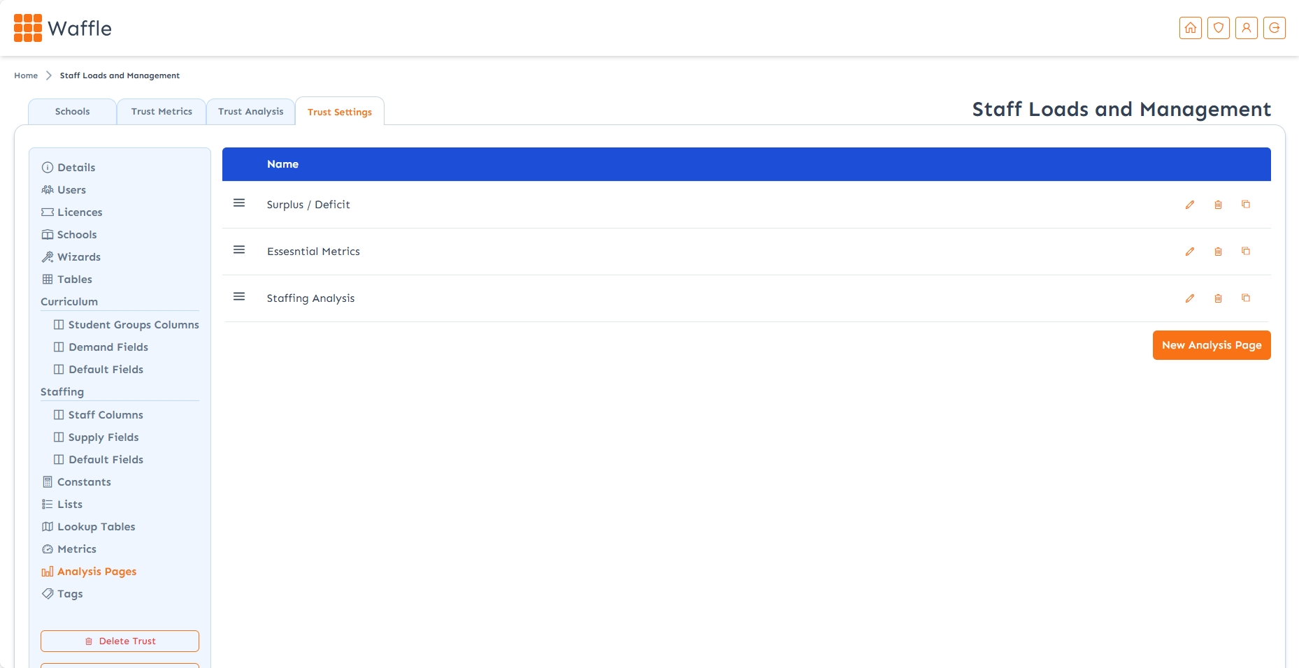 You can create your own analysis pages to share across your trust. These pages let you present and compare your metrics using tables, cards, or graphs, making it easy to visualise patterns and spot areas for action.