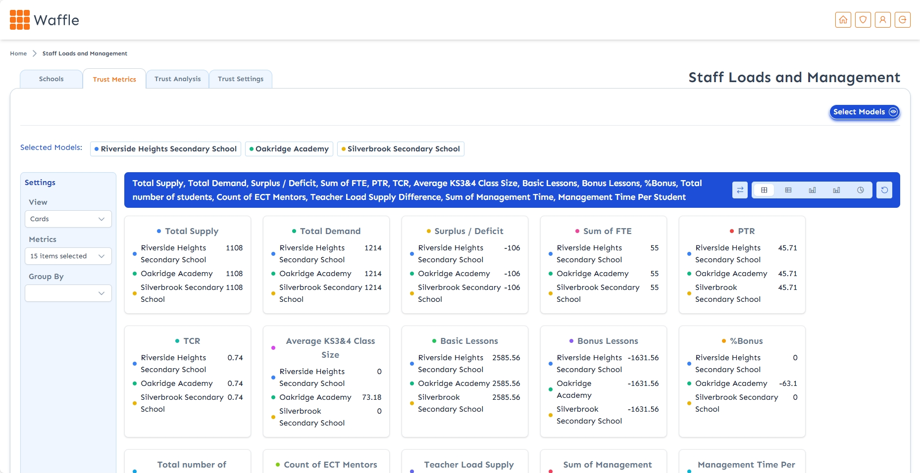 You can create your own metrics using an intuitive drag‑and‑drop editor, giving you complete control over what you measure. Build metrics that matter to your trust—whether they relate to staffing, curriculum, finance, or any custom data you’ve added.